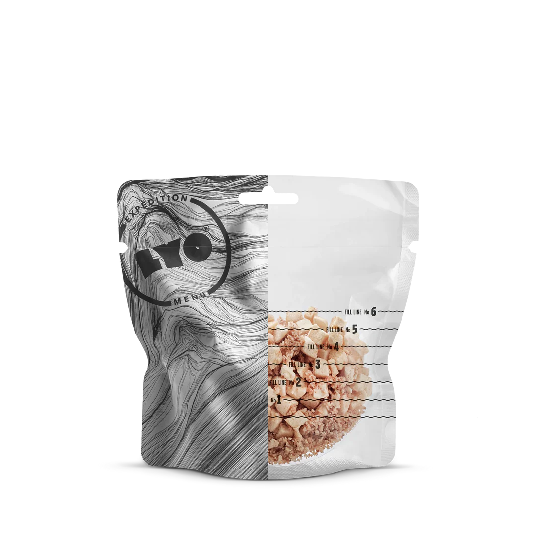 Ябълков пай, но без пай! LYO са вдъхновени да създадат лиофилизиран пай, който да може да се яде навсякъде и по всяко време. Сладки запържени ябълки и хрупкав традиционен хляб за кръмбъл напомнят за времето прекарано с бабите ни. Не е ли страхотно? Препоръчваме да използвате по-малко вода за да постигнете хрупкава консистенция.