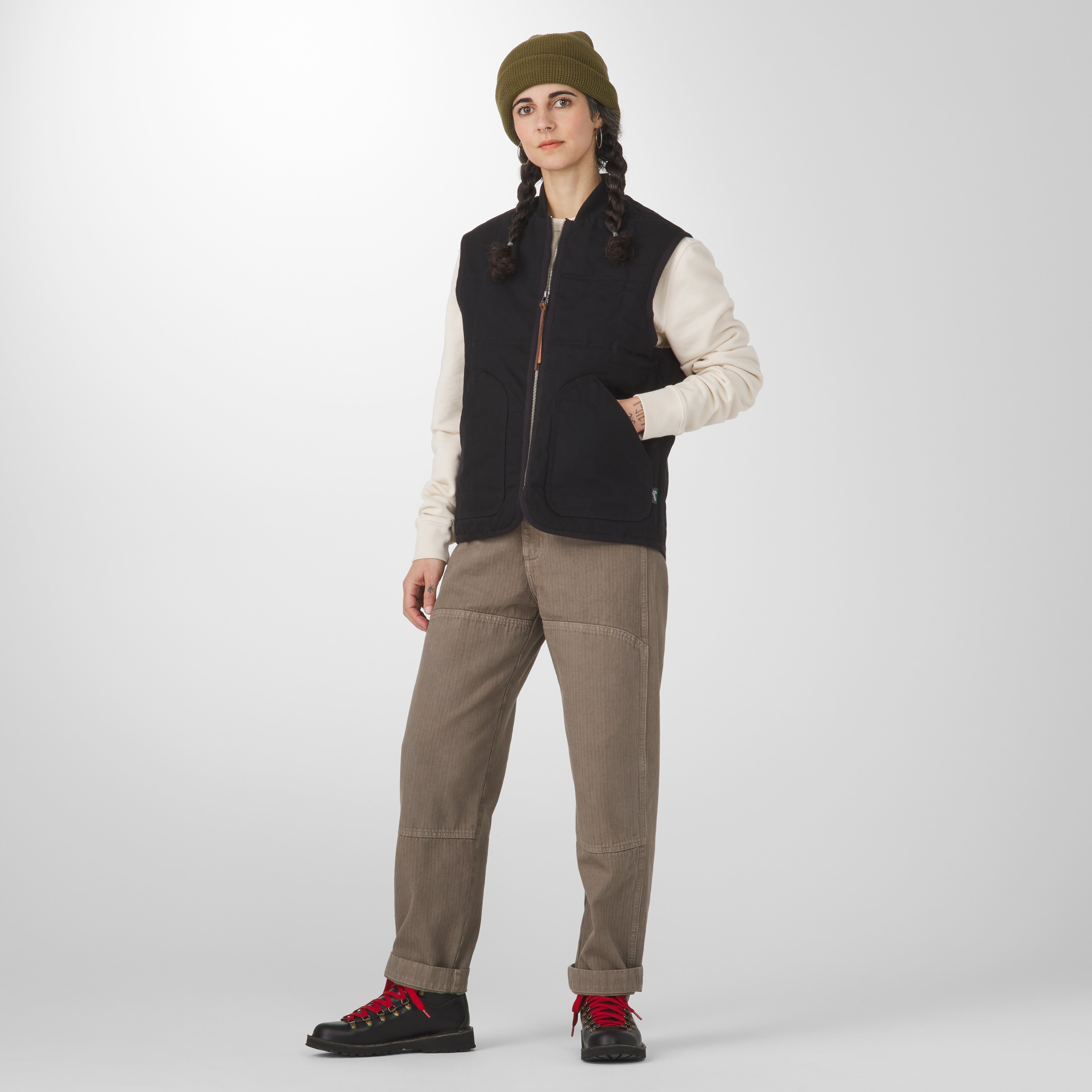 Изключително топла и издръжлива, жилетката е изработена от плат duck canvas (12 унции) с двоен шев, плоски фелд шевове, подсилени входове на джобовете от велур, здрав метален цип Made in USA и хастар от плат pilot twill. Лека и удобна, без излишен обем, тя използва изолация PrimaLoft®, която осигурява надеждна топлина дори при влага.