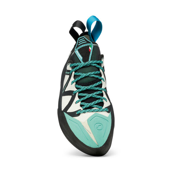 VAPOR WOMAN предлага поддържащи кантове с гъвкавост, насочени към по-технични маршрути на открито. Леко обърната надолу форма и среден до нисък ъгъл на пръстите водят до добре балансирана обувка, която предлага страхотно представяне във всички стилове на катерене.