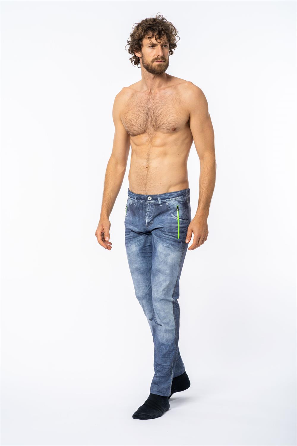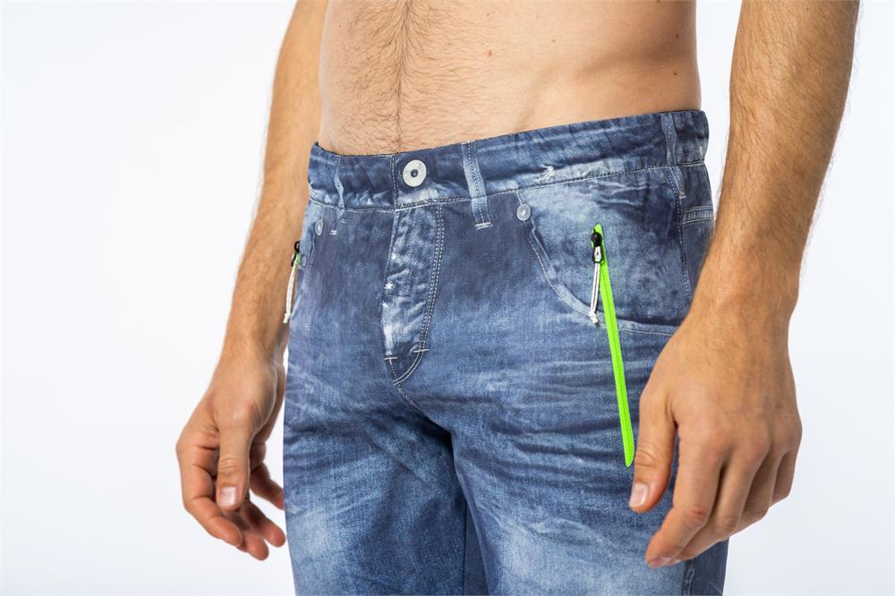 Панталонът Super Pant съчетава по перфектен начин модата и функционалността в света на аутдора. Изключително еластичен, дишащ и удобен за всякакви дейности на открито, той впечатлява и със своя стилен деним принт – рядкост в планинското облекло. Изработен от биеластичен плат Stretch Series, моделът постига автентичен винтидж ефект на дънки чрез прецизен печатен процес. Всеки чифт е изрязан на ръка, така че принтът да съвпада идеално със шевовете. Разполага с лазерно изрязани странични и заден джоб с подлепени ципове, изцяло принтиран дизайн в стил дънки и еластичен колан.