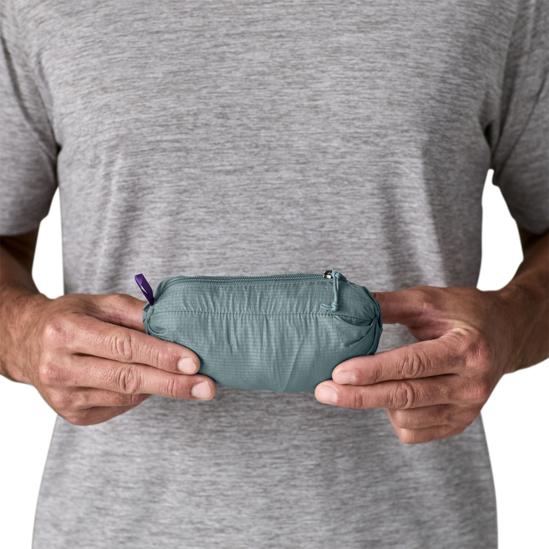Джобът с цип на гърдите се превръща в чувал с подсилена примка за карабинер.